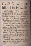 As far as I know this remained an unsolved murder. They figured she was stabbed in the head with a screwdriver. I don't believe any charges were ever made. This rocked the whole family.