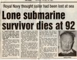 Attached is a picture of Frederick (my dad) and Olga. An newspaper clipping of Uncle George as the Navy thought he was dead and put a newspaper search out for him or his relatives about the sinking and of course George was still alive. The relatives of those lost went to Texel Island in 1984 to visit the wreck site and laid a wreath. Some of the submarine has been washed ashore and there is a small museum recalling the sinking. One of the close friends of Lt Colthart visited George and I have been in touch with him about the visit. The relatives of those lost wrote to George for many years after the sinking and I have copies of those letters.