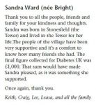 I've just got back to Canada from a visit to Stonesfield. When I was there I was sorry to hear that Sandra Bright (don't know her married name!) had passed away. I think she was a long-time member of Stonesfield Band. Her mum was Doris Oliver and her dad (Geoffrey Bright) was killed right at the end of WWII. I think a photo of him has been posted on the website.